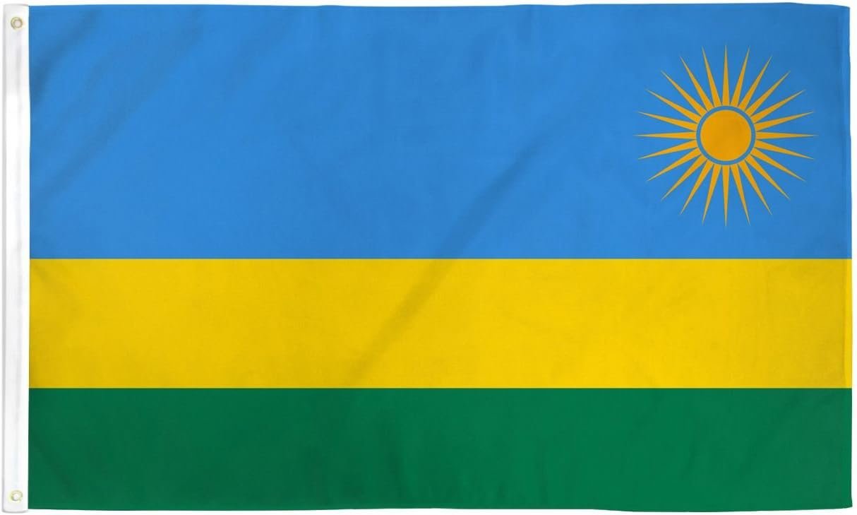 Whether you are a flag collector, planning a cultural celebration, or simply looking to honor Rwanda, this 2x3ft poly flag is an excellent choice. Its lightweight construction allows effortless mounting on flagpoles, walls, or as a decorative piece. The rich blue, green, and yellow hues, along with the symbolic artwork, reflect Rwanda’s aspirations for unity, peace, and a brighter future.